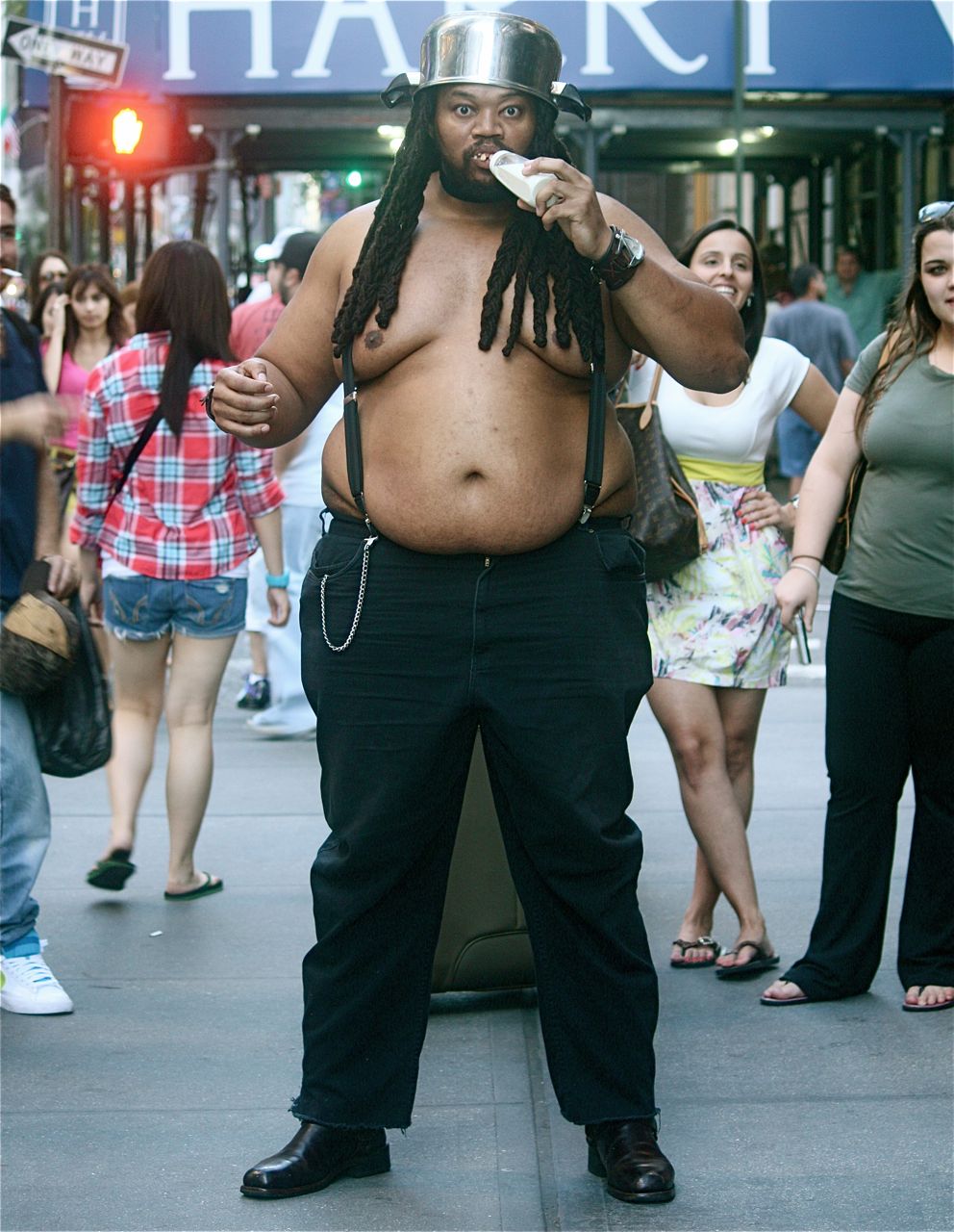 A short weekend sojourn to New York led to lean 600 photos taken. Yes, there will be copious photos, but I choose to post this one first. This guy was in front of the Abercrombie and Fitch Fifth Avenue pleasure dome that smells like a teenage boy’s bedroom.