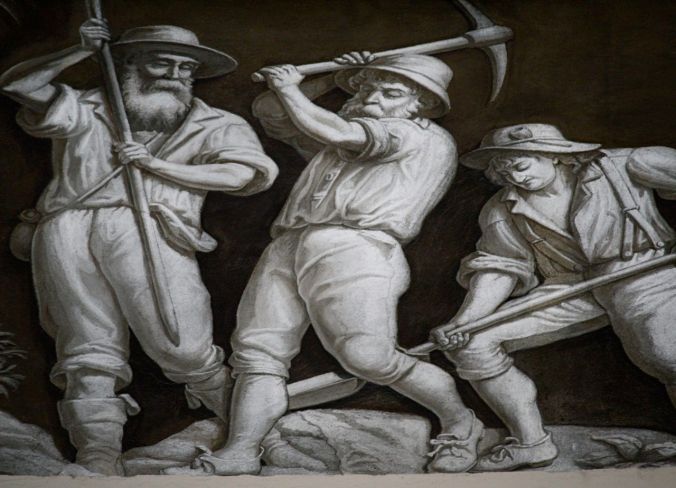 I know this gent is mining for gold, but he really looks like he is just swinging a golf club. Appropriate for our golf loving congress persons. The Capitol is fully of funny things, like the fact that a lot of the rotunda painting are wrong and feature drag queens and George Washingtons (plural). The Capitol is also a place of passageways and the past. Check this out: