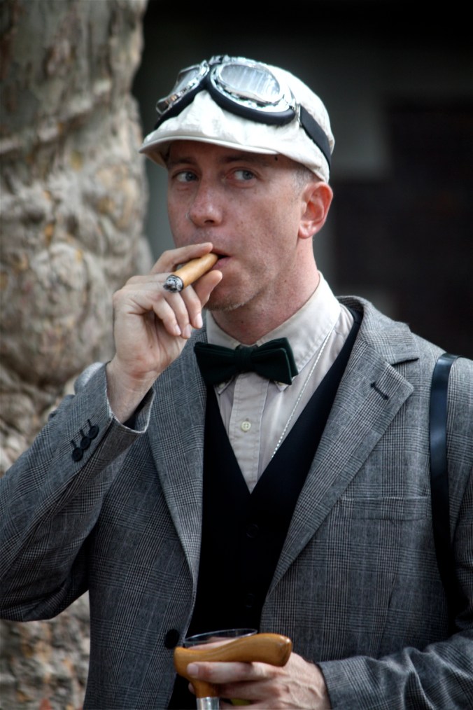 Early on in the day the whole island crowded with people in period costume and I started to think of them not as people in costume, but sort of players in a play or a movie. I tried to put them together into a movie, perhaps called “Garden Party” but then I saw so many wonderful characters that I just decided to turn into a television event miniseries called “Garden Party.”
