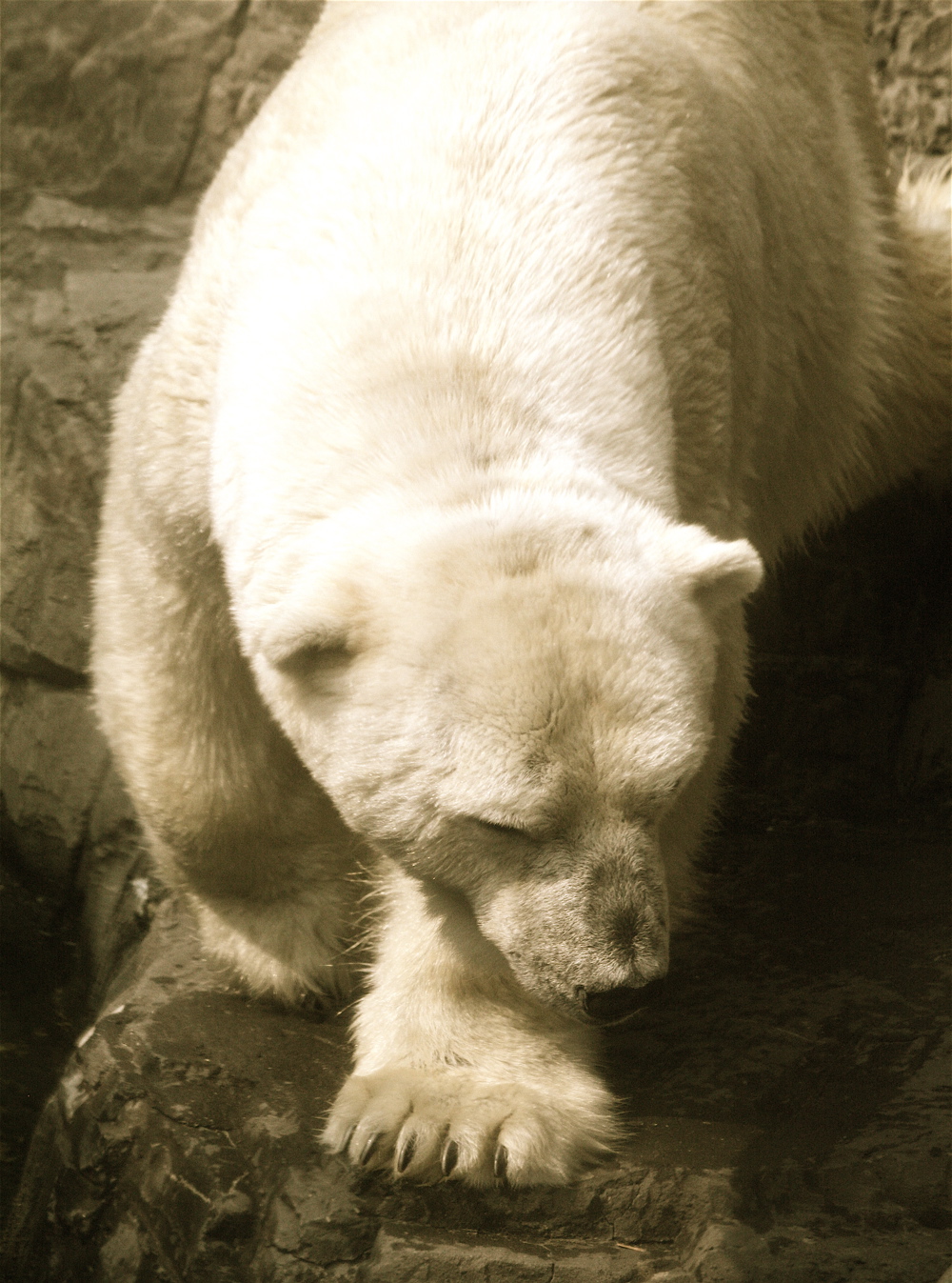 One other thing unites Gus with the denizens of the bedrock on the Hudson. He takes or used to take Prozac. Like all New Yorkers, Gus was depressed for a time, but instead of letting it out on their unsuspecting co-workers, Gus started to swim back and forth in his enclosure. All the little children were delighted, but the zoo keepers started to get slightly worried, so they brought in an animal psychologist to treat Gussy.