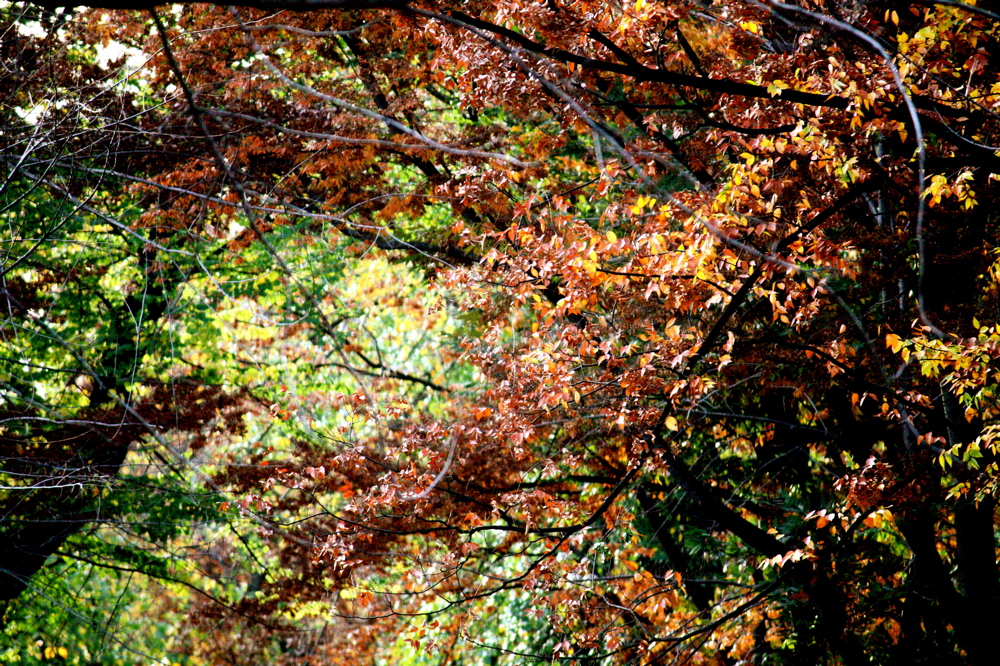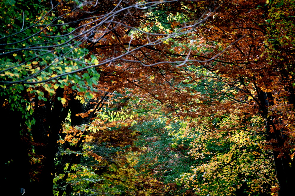 I can’t call this entry just plain “foliage.” Or “fall foliage.” That was be kind of lame. I’d rather call it stained glass, as that is what these images remind me of. Images or times when light flashes in through a very subtly colored window.
