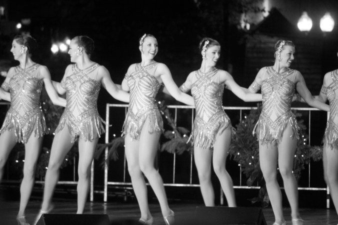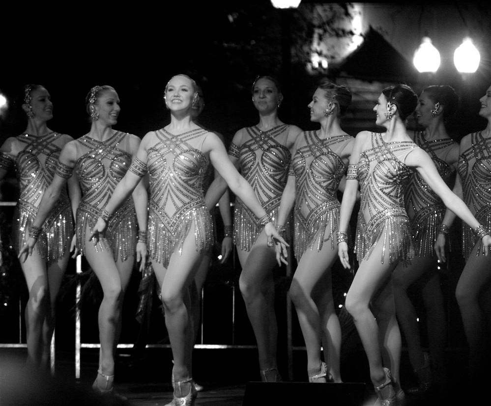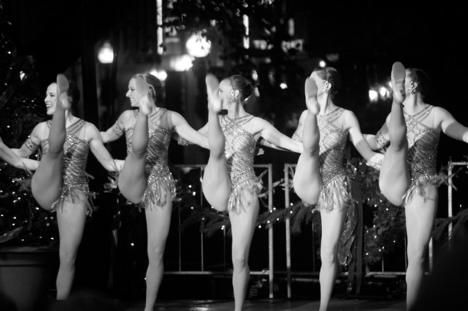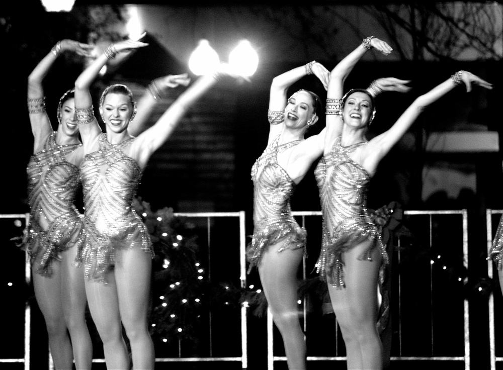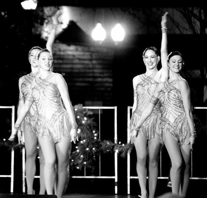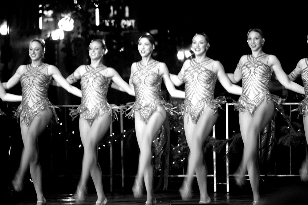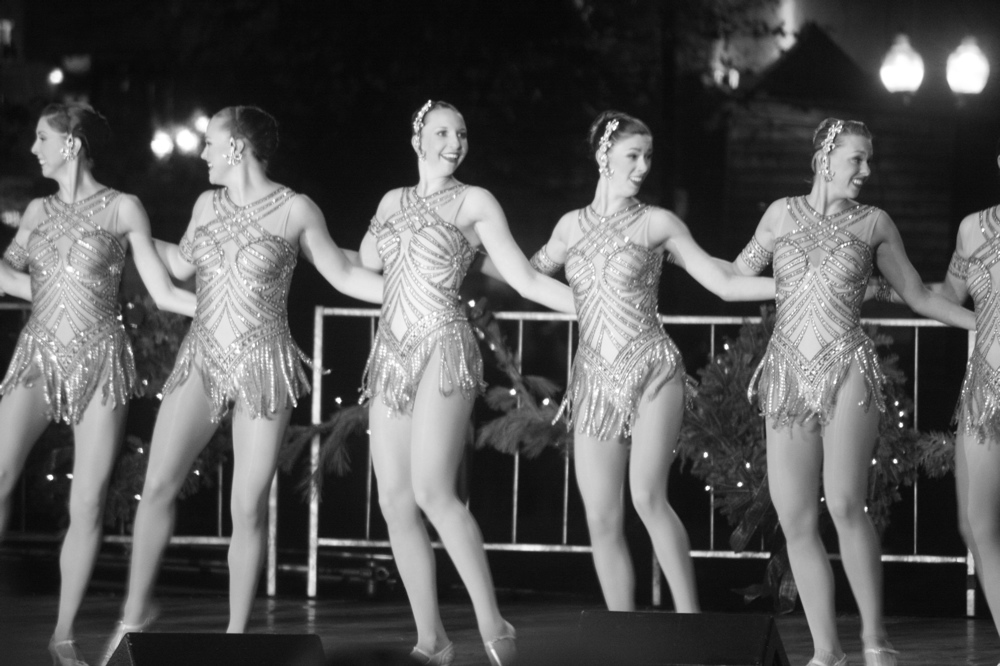 Well, anyway, let’s get out of memory lane and move on to other things.  There were other performers.  Now let me explain something.  These were all taken from a mile away from the middle of a crowd.  In other words, my vantage point pretty much sucked, but I made the best of it.  Usually my vantage point sucks and I never explain, letting the work speak for itself.  But since we are about to see 10 consecutive photos of Rockettes, I needed to explain.  See, these ladies, they reach the back seats.  And when their photos are converted to black and white, they start to look like stars of some kind of Parisian revue from the 1920s: