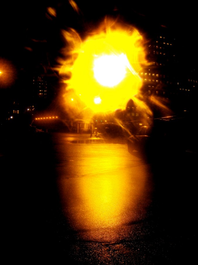 The Sun January 14, 2012January 14, 2012 / nataliar77 No, I’m totally kidding. This is a weird light I saw in the rain: Rate this:Share this: Share on Facebook (Opens in new window) Facebook Share on X (Opens in new window) X Like Loading...