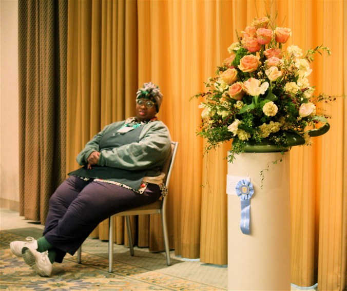 This is one of the more interesting parts of show. Yes, you just say a grown lady, a baby and a couple of birds. Never a dull moment at the flower show, I tell you!