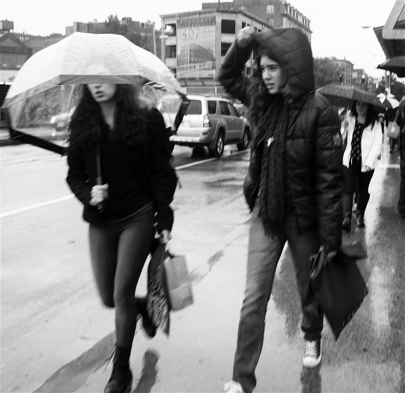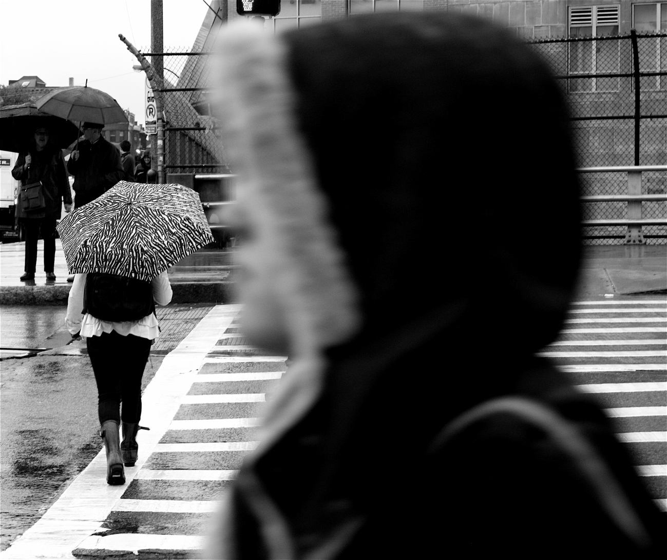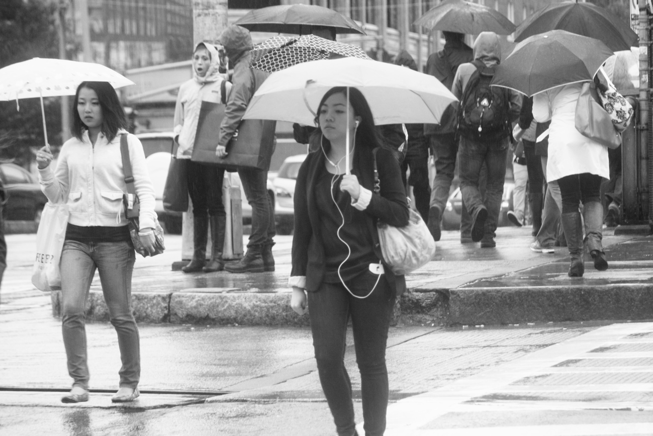 I suddenly noticed a sea of umbrellas walking down Boylston street and I stood there for a while, waiting for it to thicken. People walking with umbrellas to me in so elegant. Perhaps I spent too much time looking at Caillebotte or walking the Bill Cunningham movie. Bill said that people in the rain are who they are. They put on no airs.