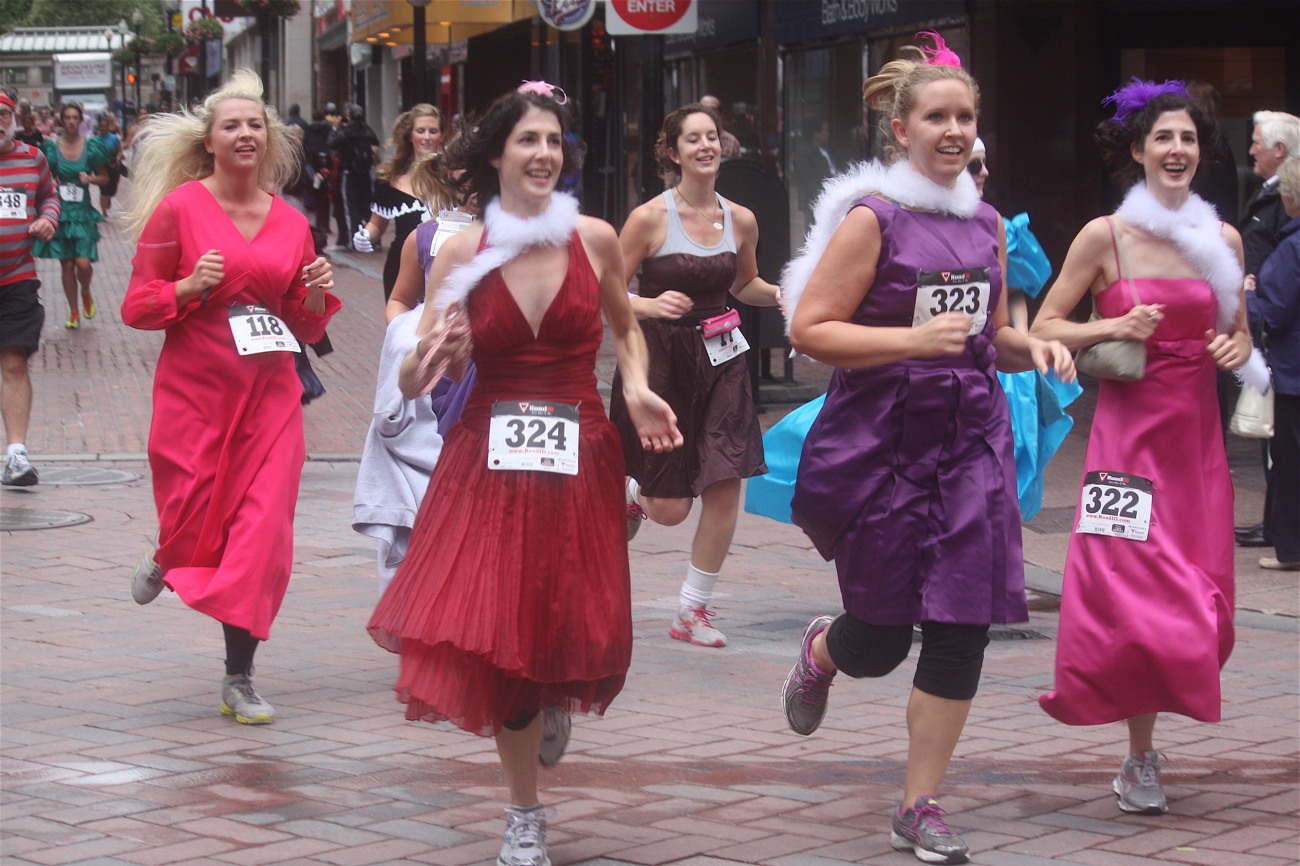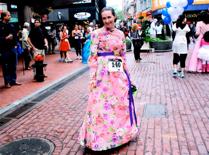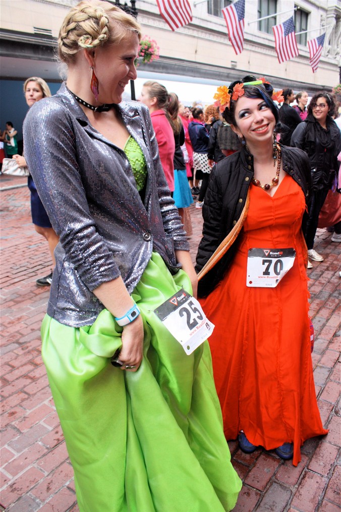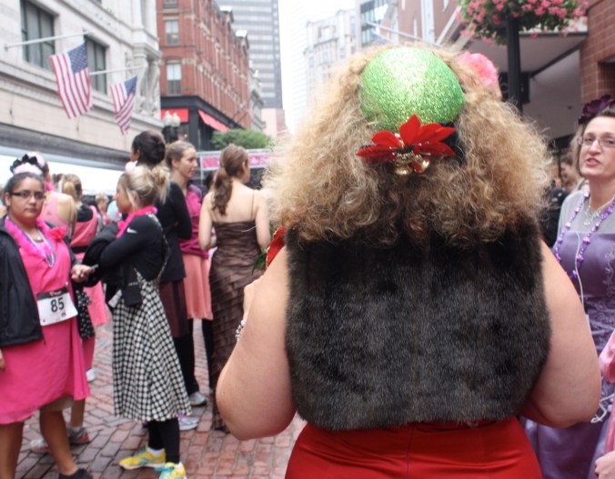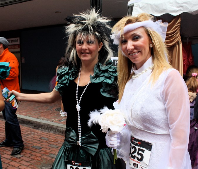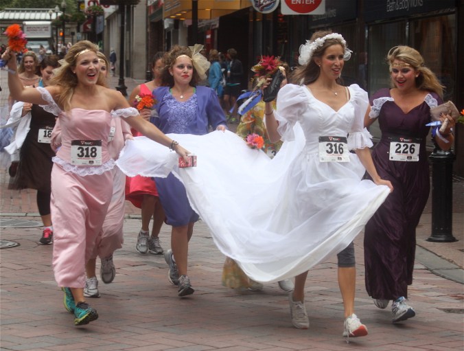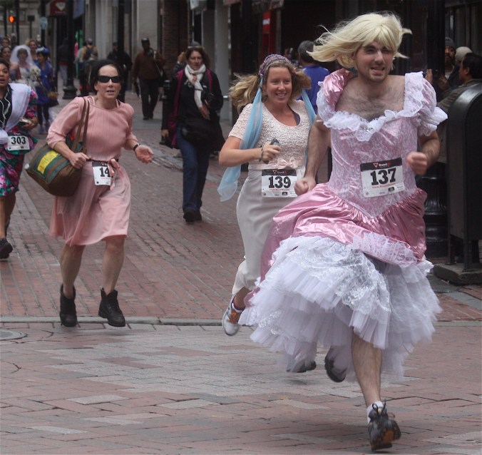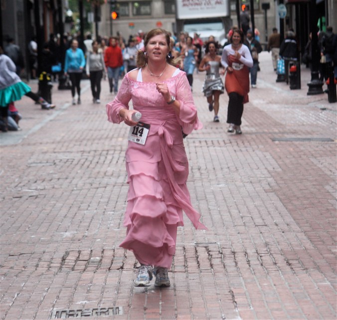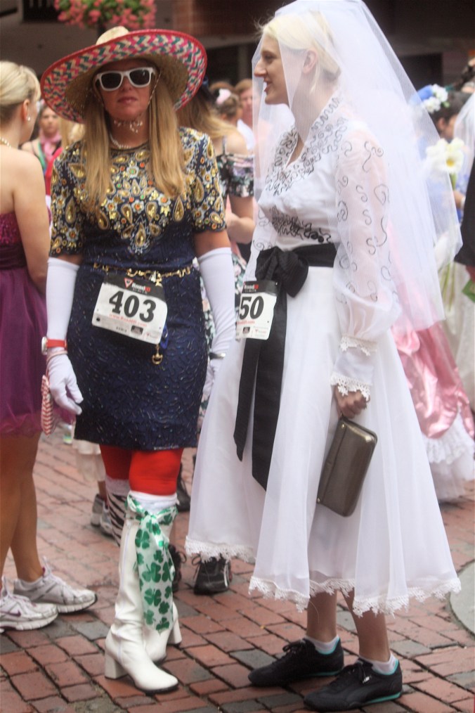 Funny costumes? Athletic contest?? Could it be?? Yes. Boston was again in full effect. Today was the Running of Bridesmaids, where women don ugly bridesmaids outfits and run. The ultimate in Bostonian tomfoolery. I love it!!