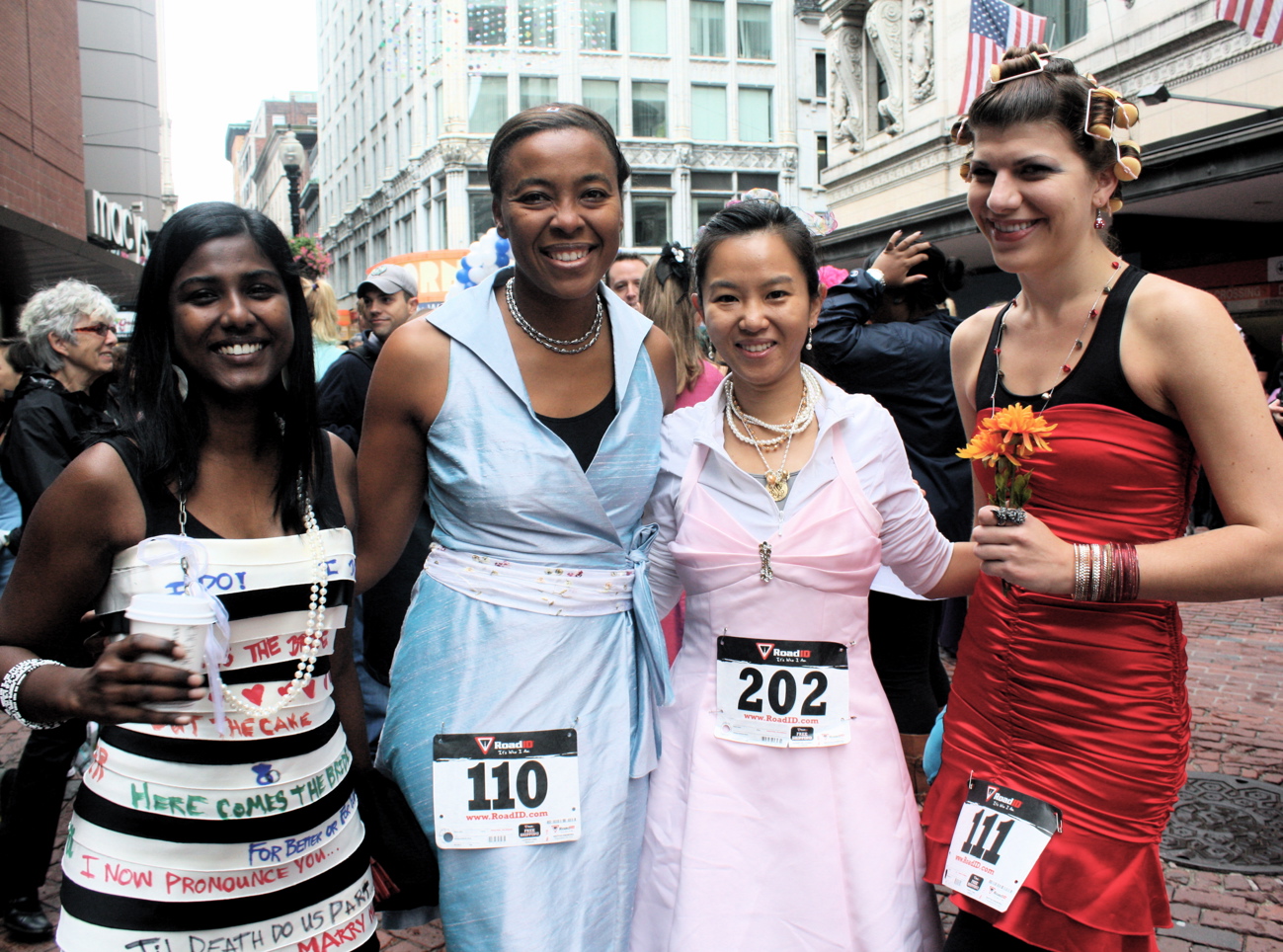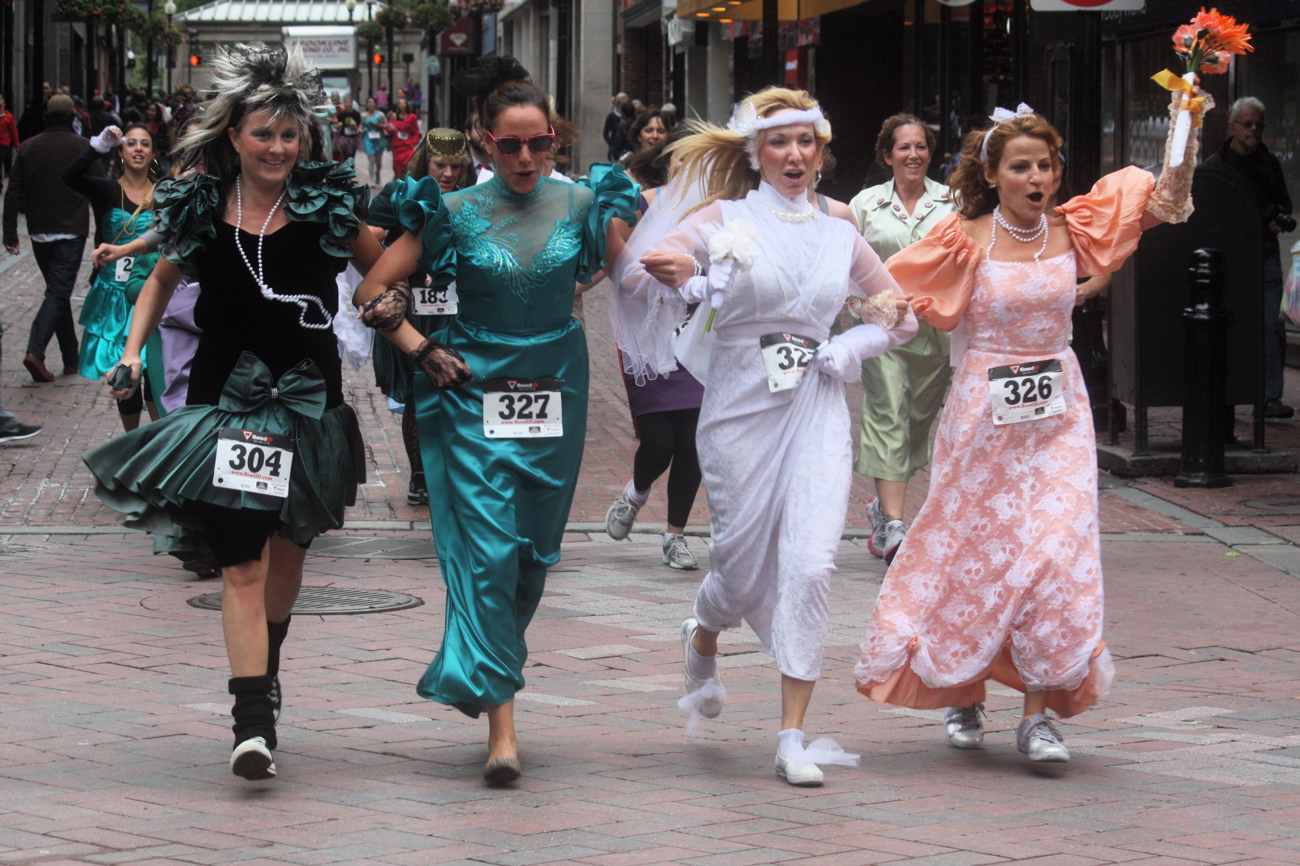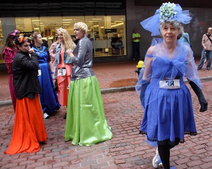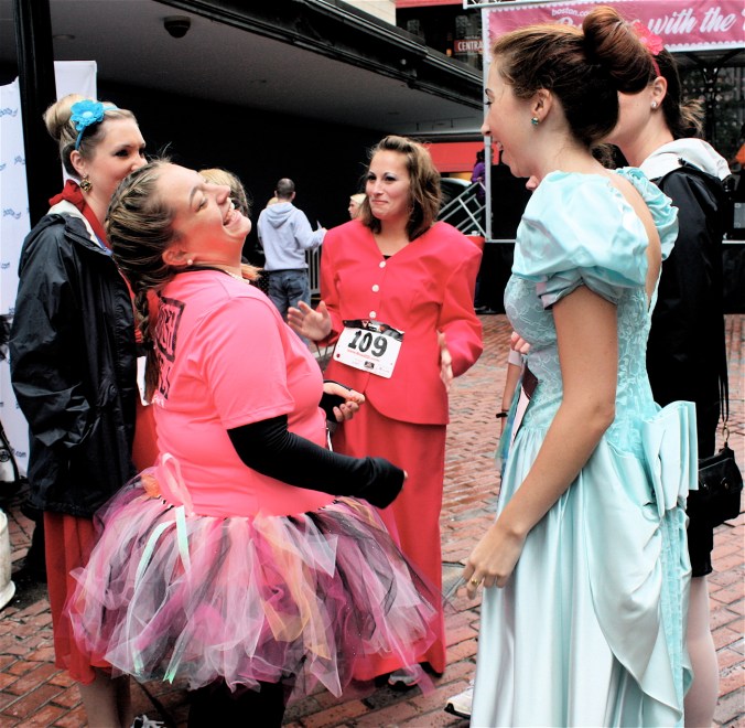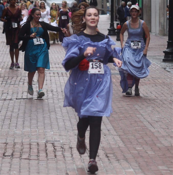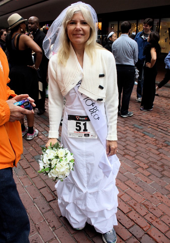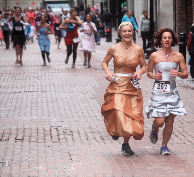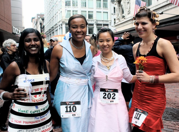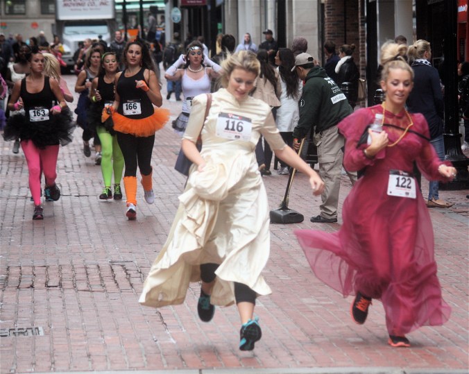 Funny costumes? Athletic contest?? Could it be?? Yes. Boston was again in full effect. Today was the Running of Bridesmaids, where women don ugly bridesmaids outfits and run. The ultimate in Bostonian tomfoolery. I love it!!