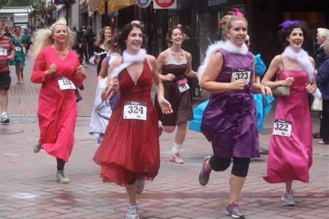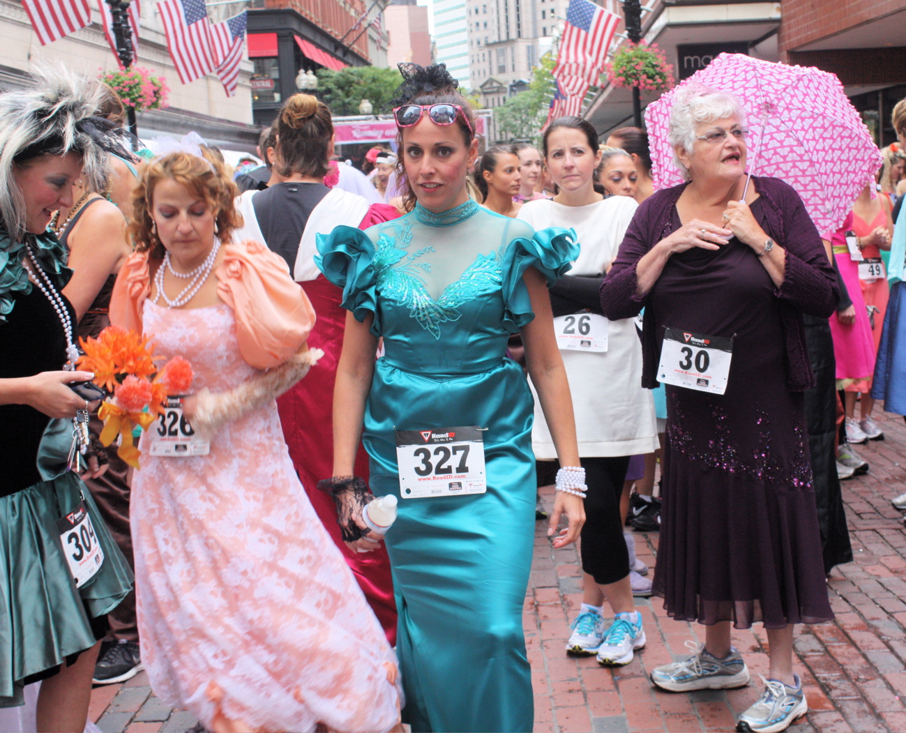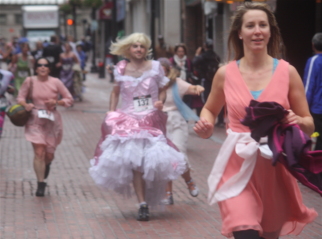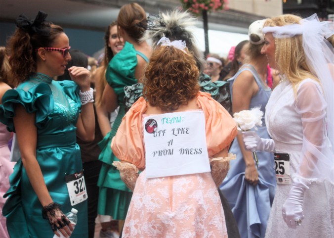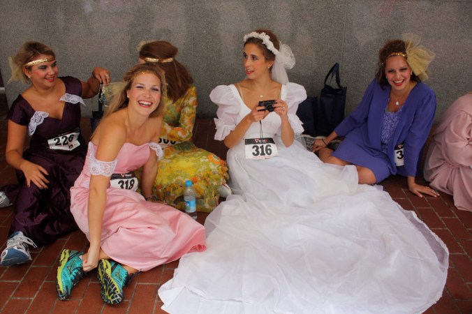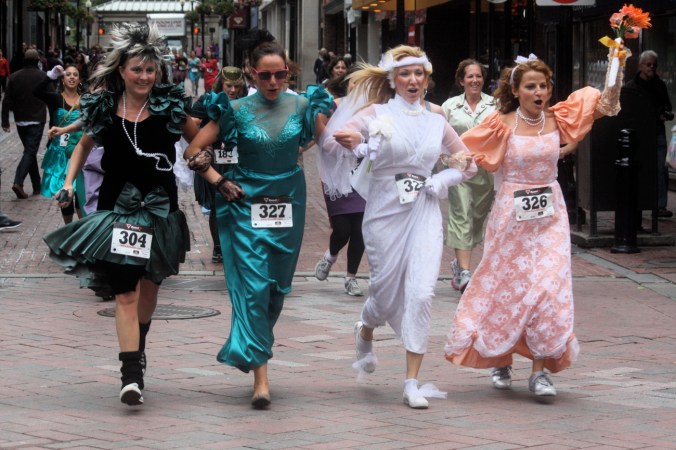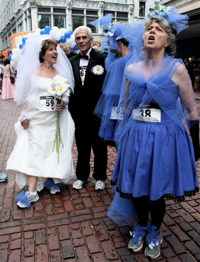 Funny costumes? Athletic contest?? Could it be?? Yes. Boston was again in full effect. Today was the Running of Bridesmaids, where women don ugly bridesmaids outfits and run. The ultimate in Bostonian tomfoolery. I love it!!