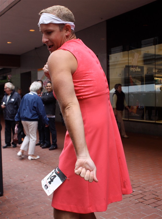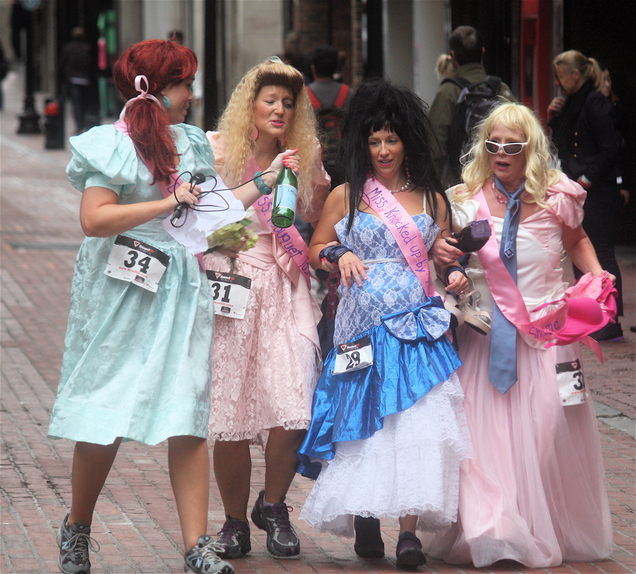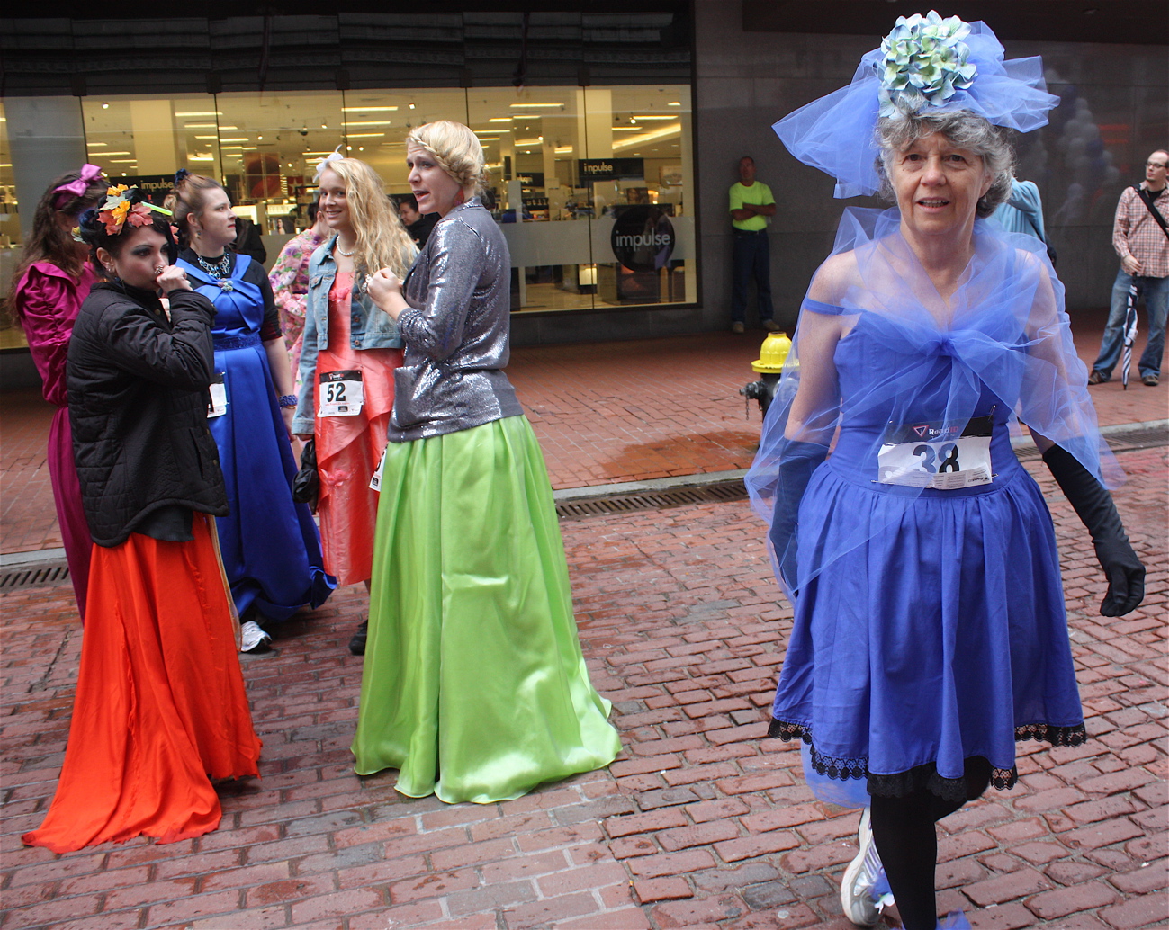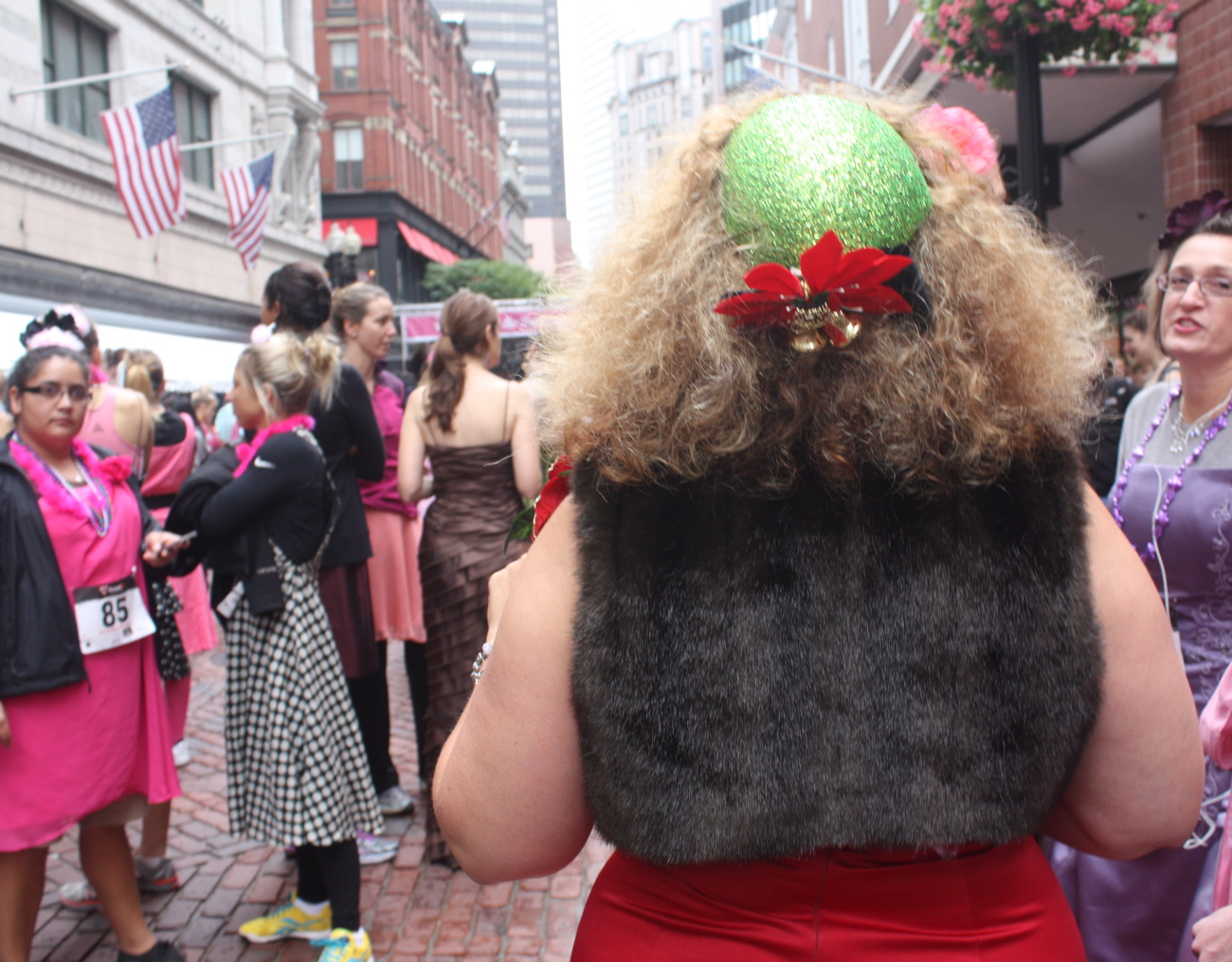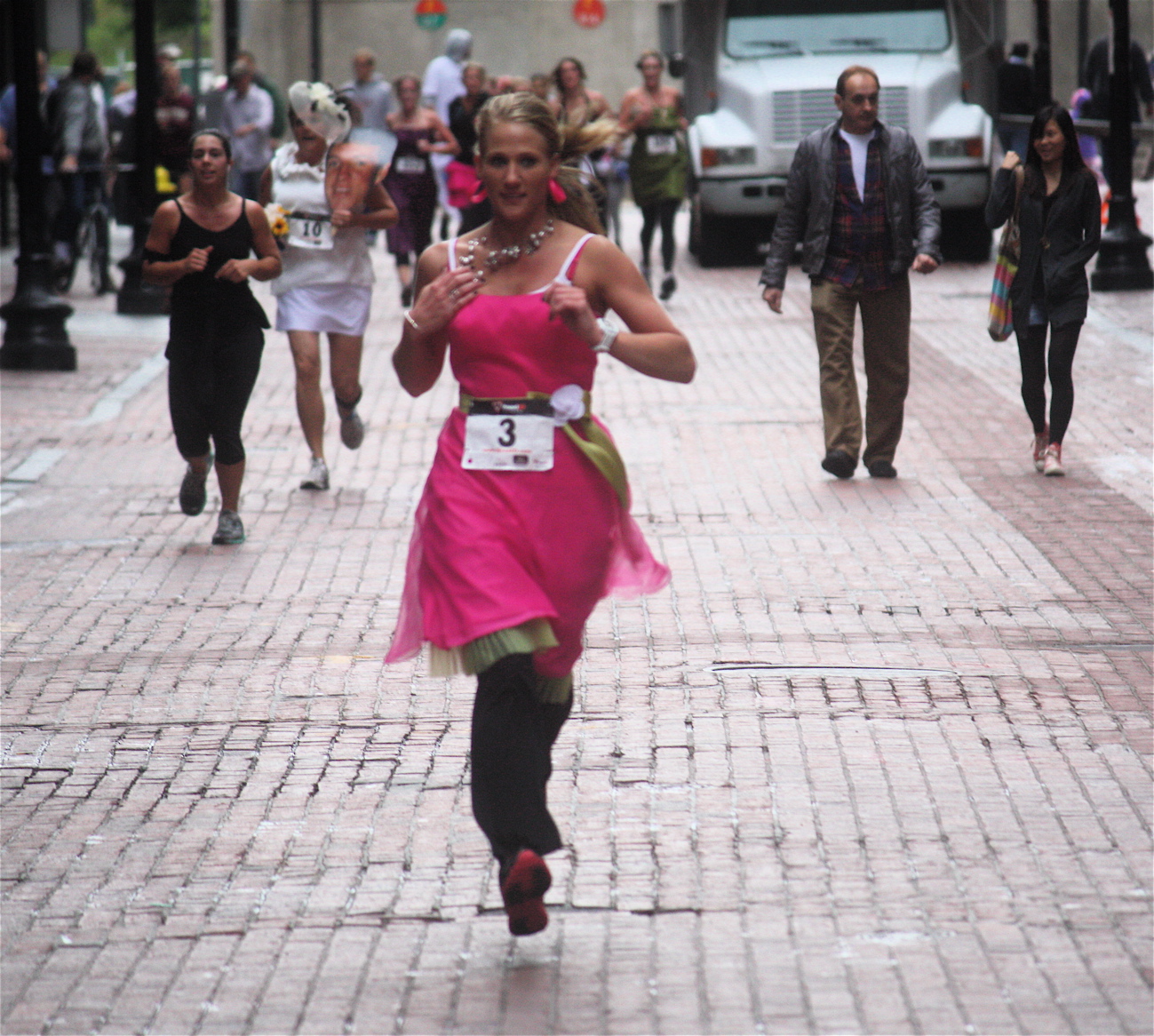 Funny costumes? Athletic contest?? Could it be?? Yes. Boston was again in full effect. Today was the Running of Bridesmaids, where women don ugly bridesmaids outfits and run. The ultimate in Bostonian tomfoolery. I love it!!