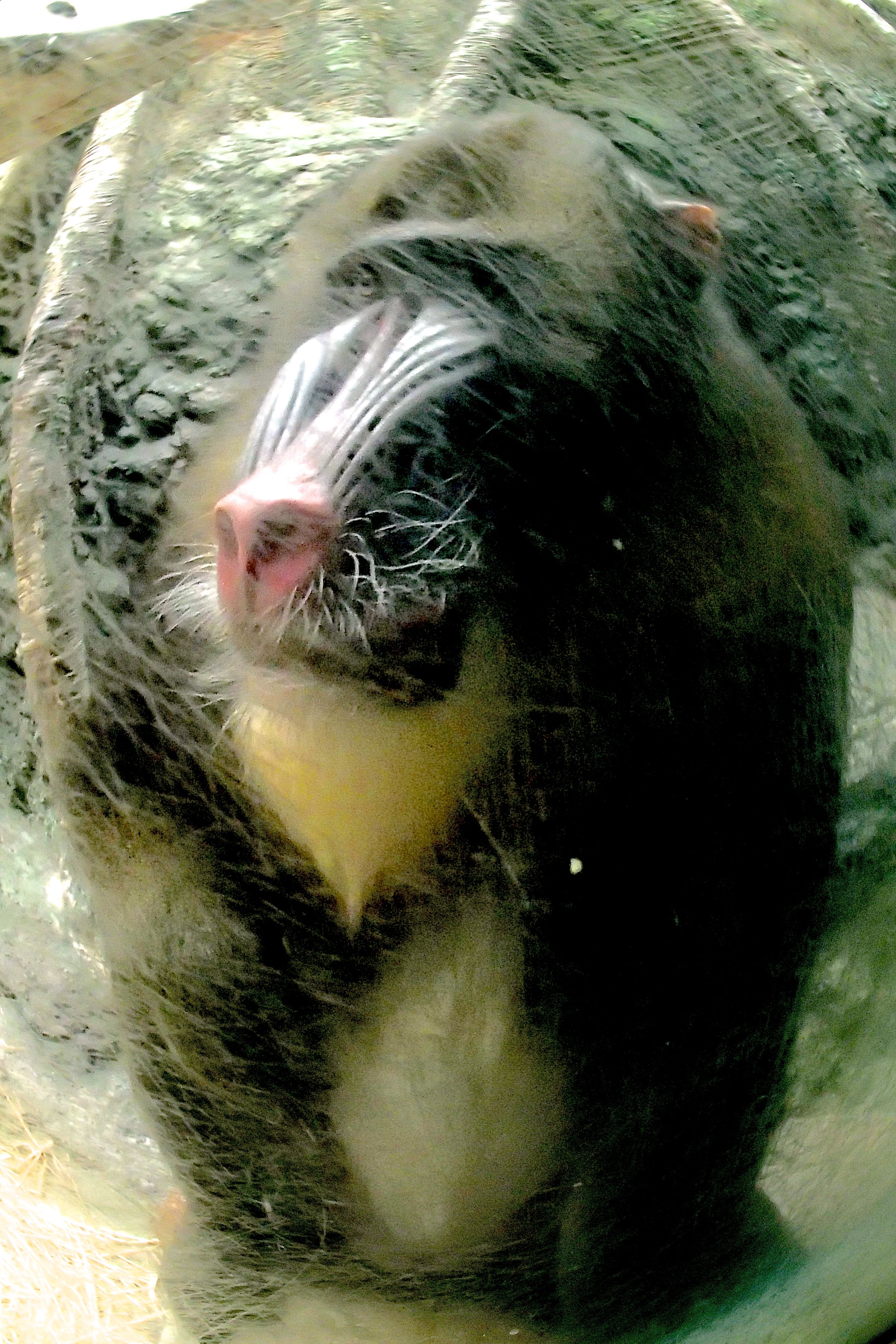 Now we get to the lemurs. Isn’t this another example of an animal that God must have said HA when he created? Well on today’s visit one of the lemurs fell in love with my friend and kept trying to jump on her. Never mind he was behind a pane of glass that could probably withstand a bullet. Try he did. But he kept falling. Here he is in peaceful repose: