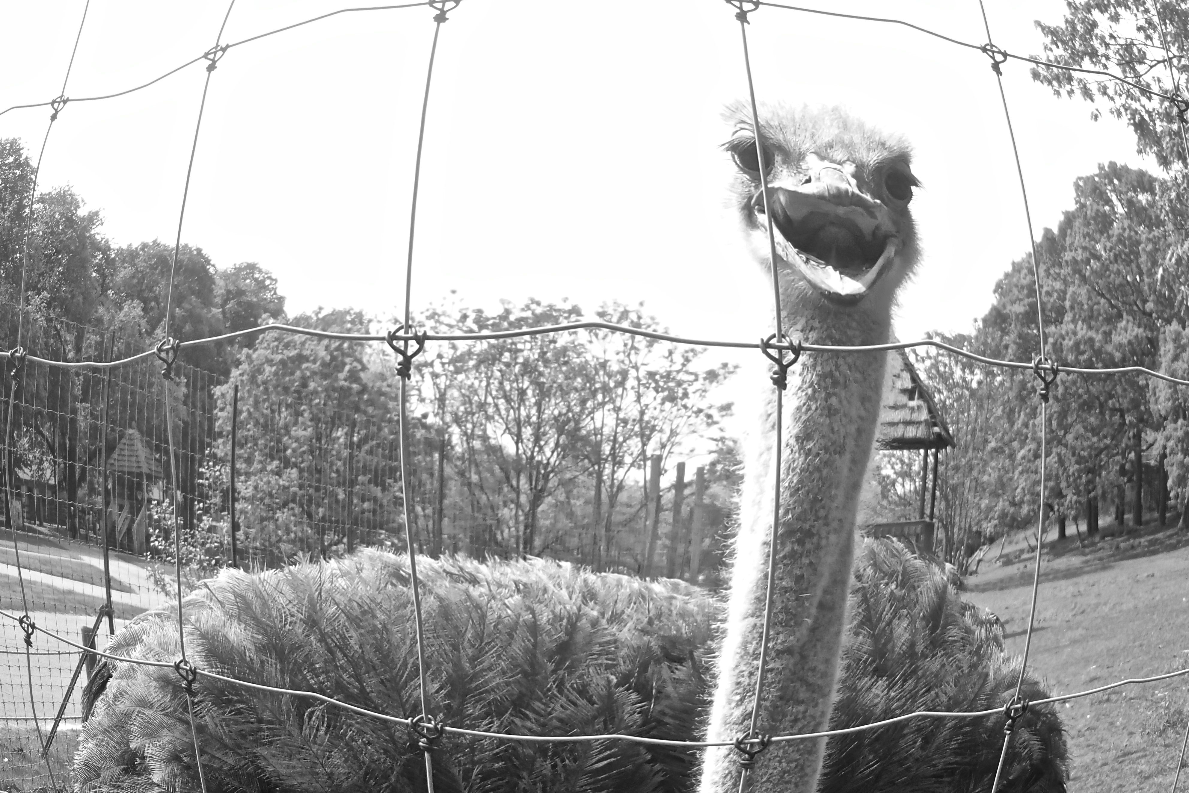Oh hi. The ostrich is here to greet you, but as you noticed the ostrich looks a little bit different. A little fat in the middle, eh? Well, the ostrich isn’t actually fat. I made the animal look that way by using a new effect on my brand new camera. No, no, no the Canon EOS has not disappeared or been eaten by a sea creature. I bought a second, auxiliary camera for ski slopes, rain and underwater adventures.