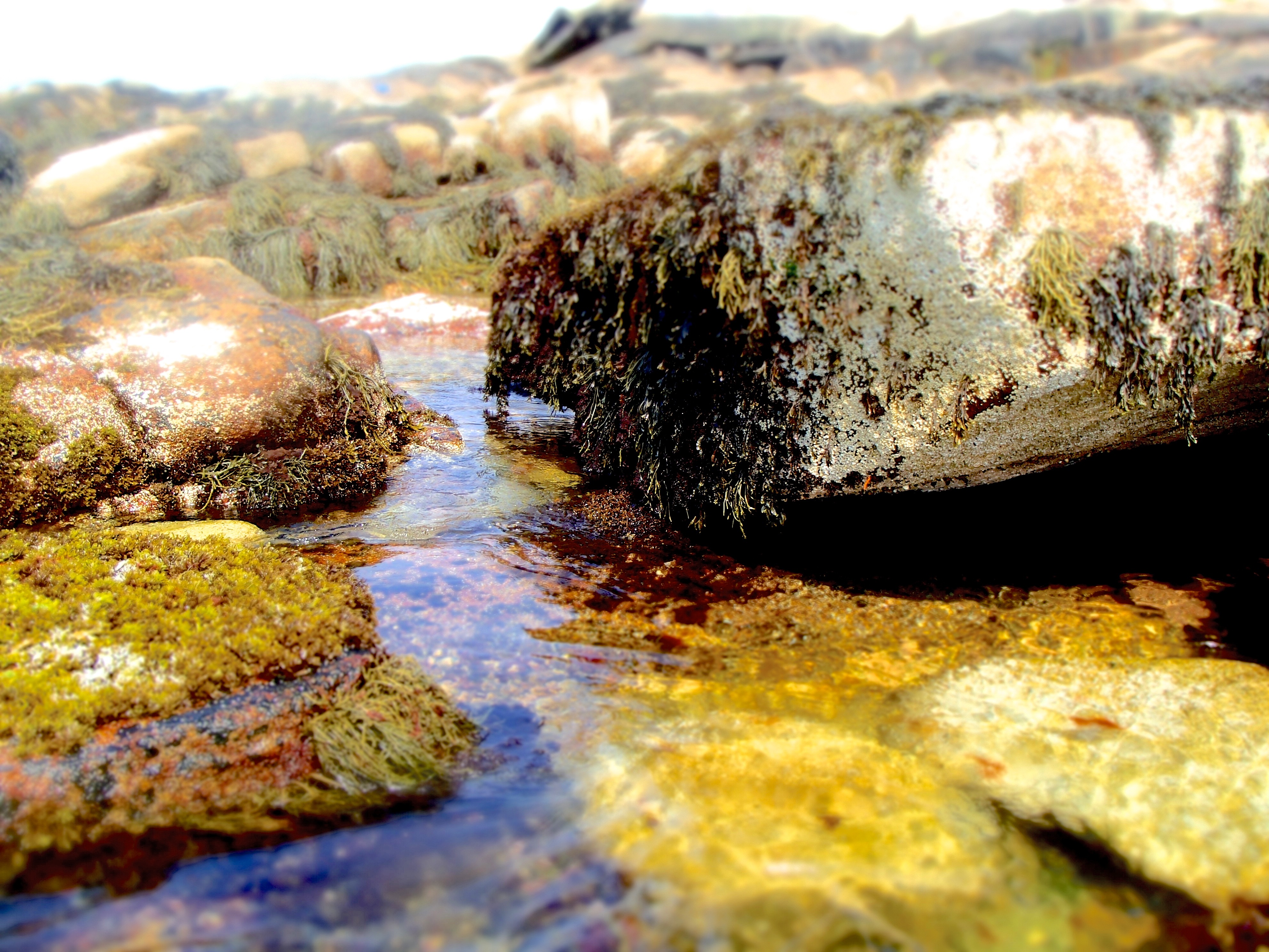 Well, it looks lovely. But getting these photos was pretty hard. These rocks were crazy slippery and me being me, I slipped on them. The first time I got a giant scraped knee and a really nicely colored bruise on my knee. The second time I got a nice scratch on my arm and my hand. Oh well. The knee will heal, the hand too. But Halibut point is a really lovely place and I really do want to go back there again. Perhaps next time I will wear my ski helmet though. More pictures: