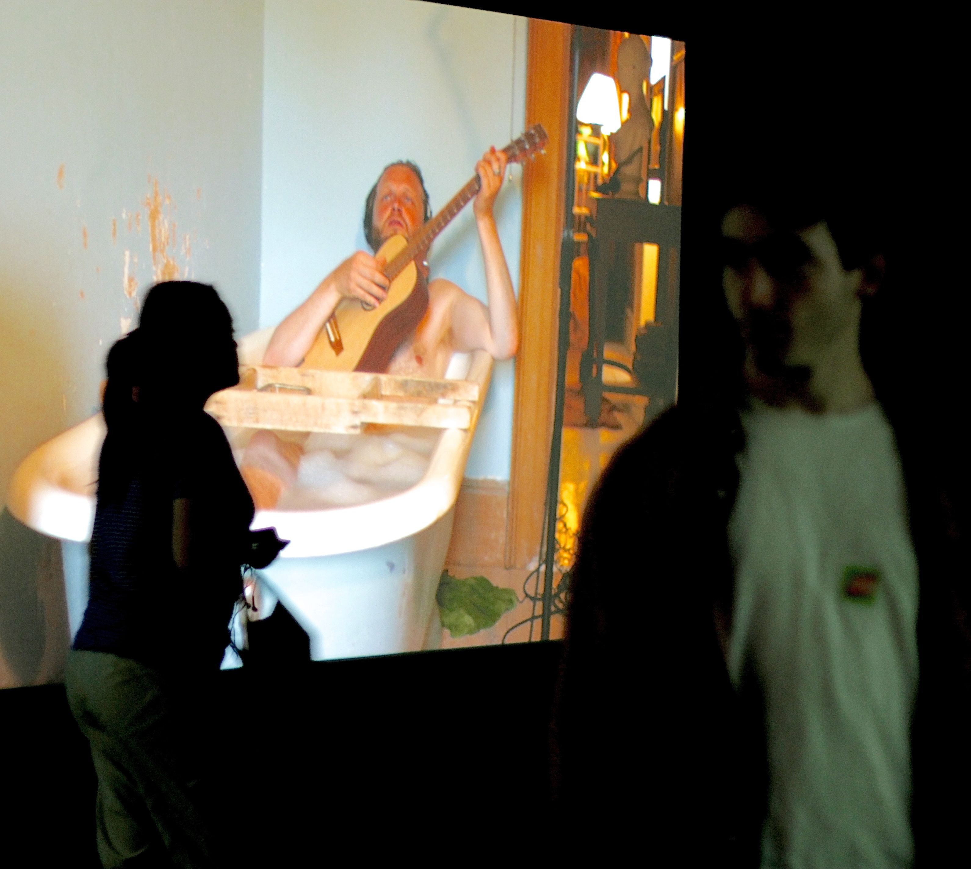 It was by an artist called Ragnar Kjartansson, who is Icelandic and a genius. Ragnar, if you reading this, you are a complete genius. The exhibit was called “Visitors” and it was at the Institute of Contemporary Art in Boston. The exhibit is hard to describe and was extremely hard to photograph.