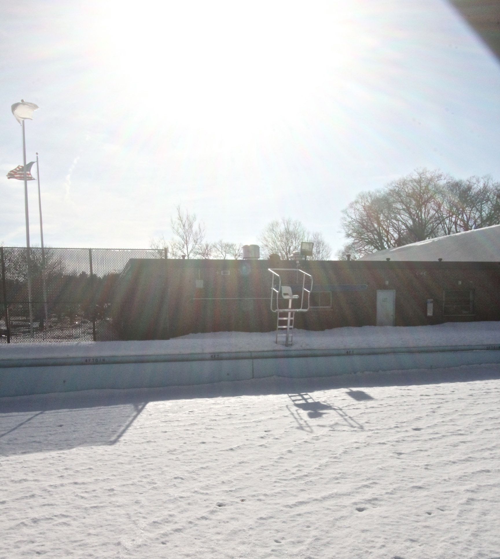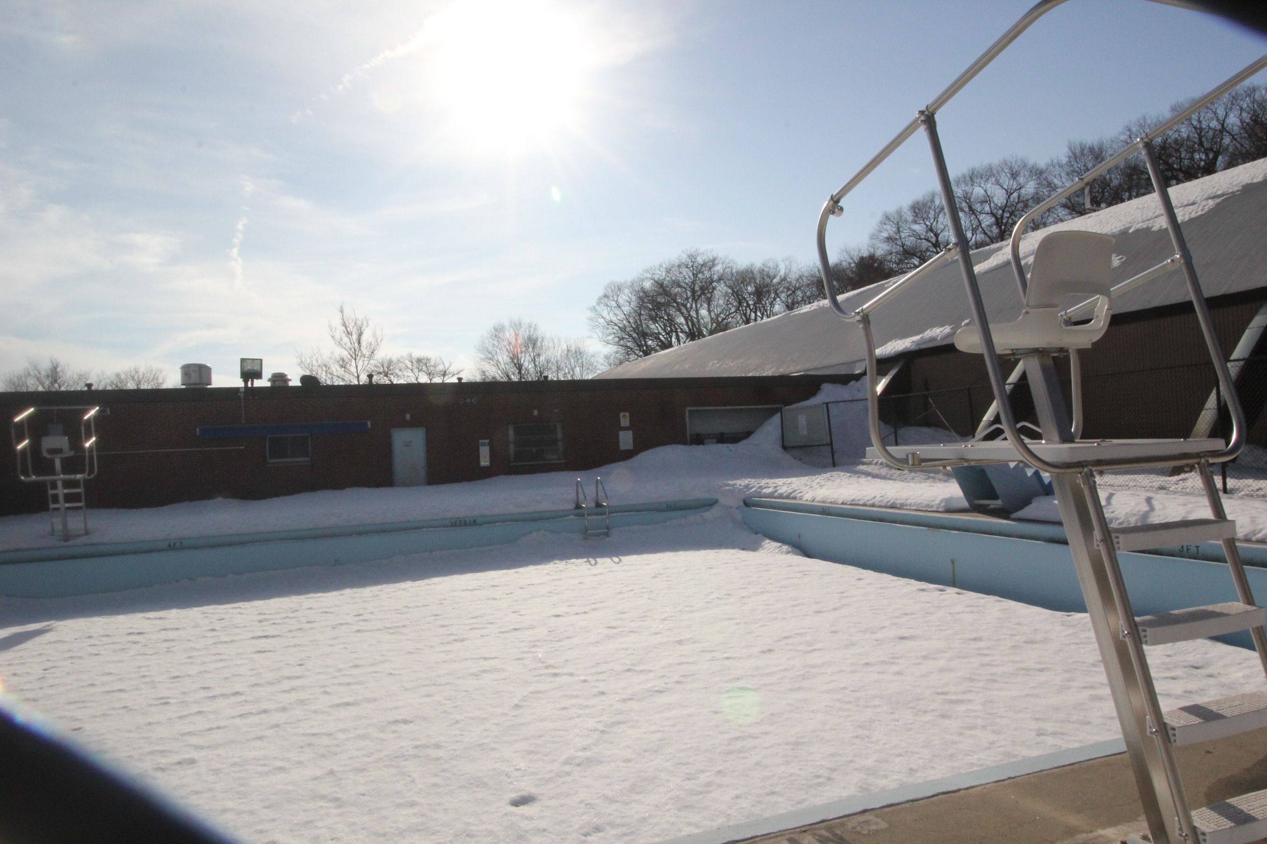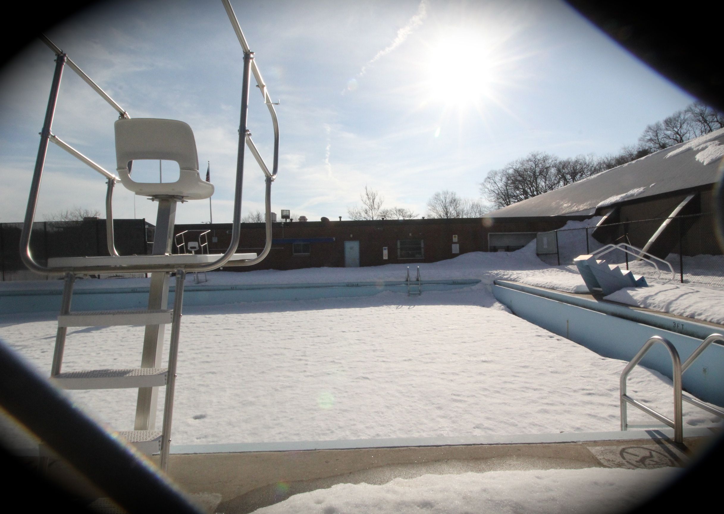 Yesterday I was on an afternoon excursion in Chestnut Hill. The excursion was successful, so I was walking home. I spotted a pool I have photographed before covered in snow. There was just one small obstacle. A ton of snow. A ton of snow around the pool. Oh and a concrete barrier.