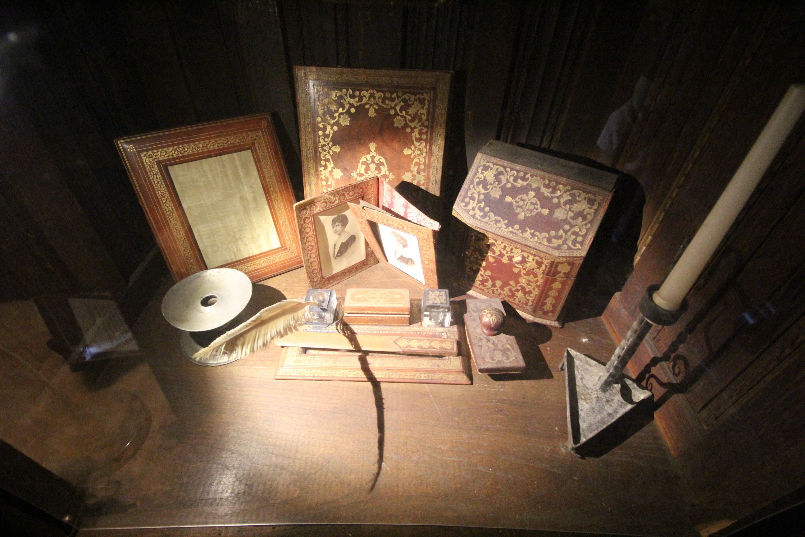 No, no, no, we are so not done yet. There were several staircases that were narrow enough to fit one human that lead you around to all sorts of tiny rooms. One room was circular library full of false doors and another was a red bedroom with an authentic, gothic mattress filled with horse hair (or something) that when you touched was as a hard as a rock. Oh and that room (according to our EXTREMELY COLORFUL) tour guide was a place where 12 ghosts had been found by a ghost hunting show.