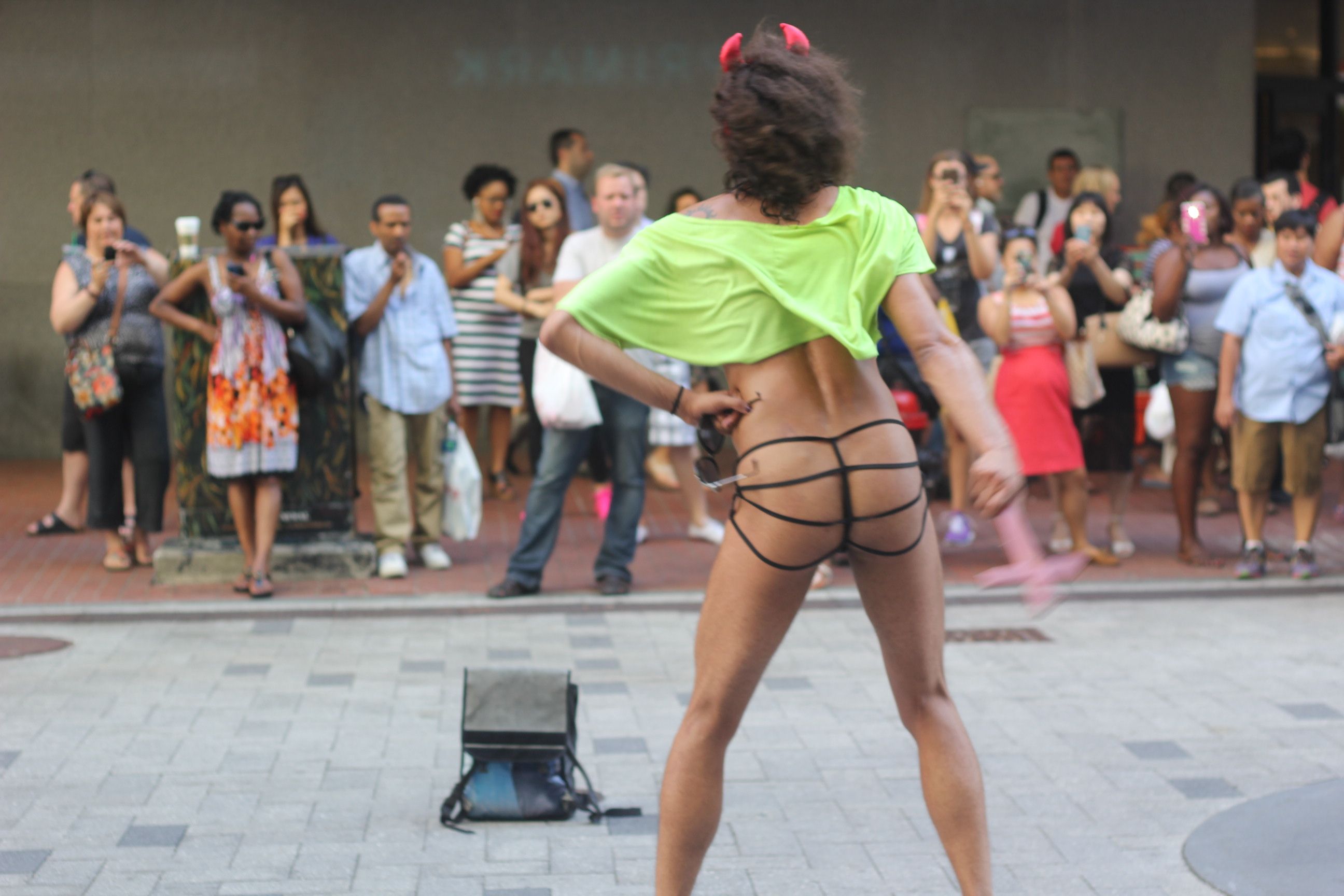 Nah, I’m kidding. Well, it was nearing the end of the day and I was walking back to work to take care of something for a couple of minutes. As I neared work, I noticed a weird commotion going on. Some kind of performance seemed to be taking place in front of Macy’s. I figured it was some kind of living statue or maybe some acrobats. Well, it most certainly was not that.
