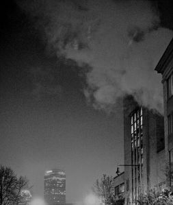 boston prudential center night fog steam