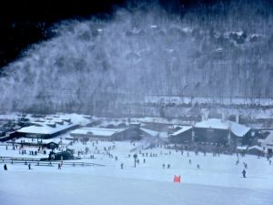 loon lodge view snow makers on