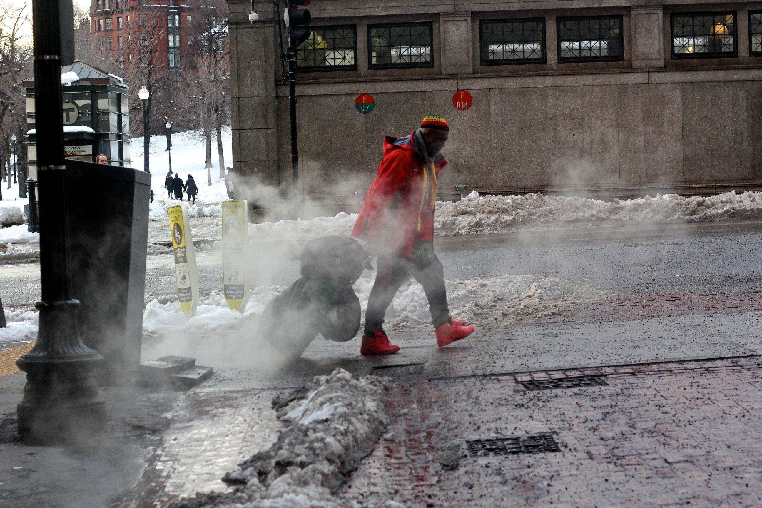 boston downtown crossing march 5 2019 snow steam person