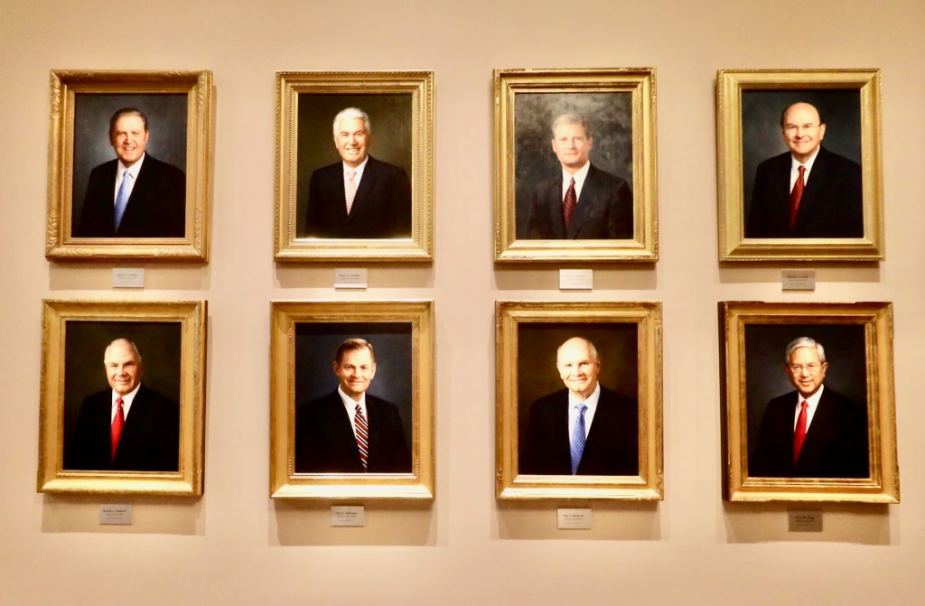 There was also a wall of portraits of the church leaders. The LDS is lead by a president, his two counselors and the quorum of the 12 apostles, terminology familiar to anyone who has even brushed up against Christianity in any way. Seeing these terminologies for the leadership, I was surprised that these were named as church positions. In the Bible, they are people who perform miracles, preach the gospel, establish churches and witness Jesus’s resurrection. This was another shift away from the non-LDS Christianity that I’ve gotten to know over the past seven years.