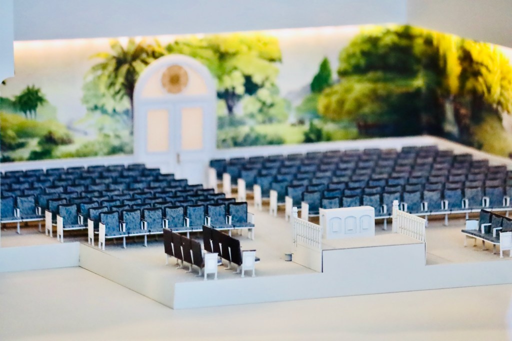 Even under the scaffolding, the temple was impressive. The conference center features a cut away model of the temple. I was really surprised by how many rooms the temple has. Layers upon layer of rooms that serve different purposes. The Mormons perform a variety of ceremonies, including marriage inside the temple.
