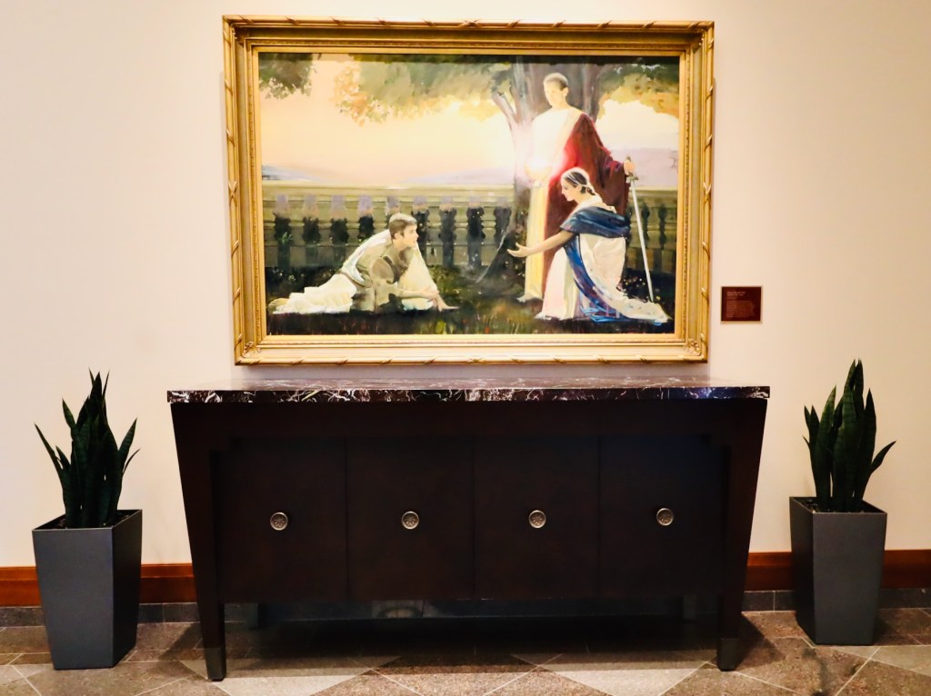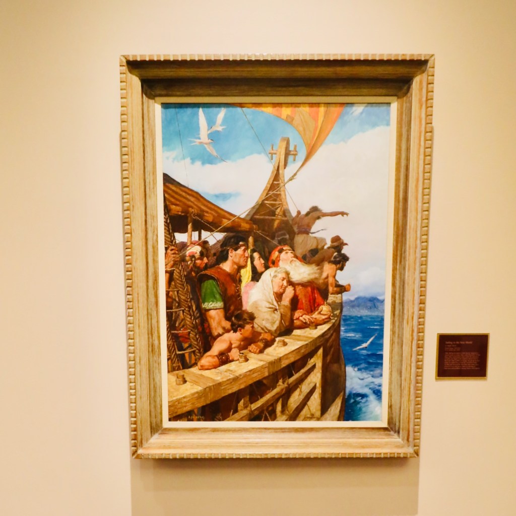 I’m saying all of this because this leads us back to our trip around the conference center. In the conference center, there are paintings of the stories from the book of Mormon. These are quite beautiful paintings, full of color and action, showing bravery, battles, sadness, loss and triumph. Themes and figures familiar to even the most hardened atheists to the most devout Christians. These paintings feature familiar characters, like Jesus and unfamiliar characters like Native Americans.